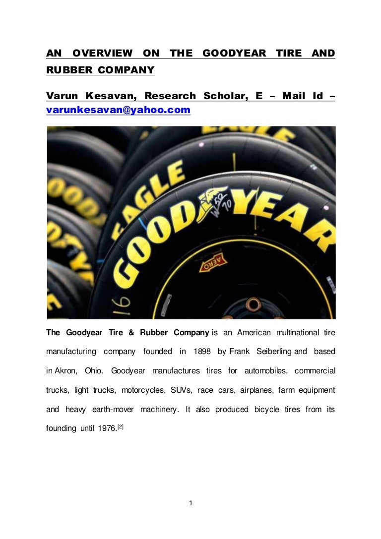 The tire data to keep you ahead of everything. Akron OH US 44306 Company. Goodyear Tire Rubber Co 1144 E Market St 823 Akron OH 44316.